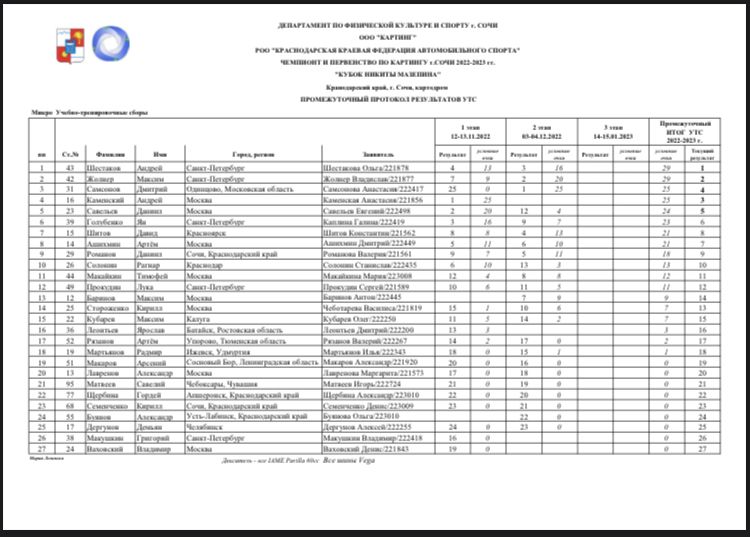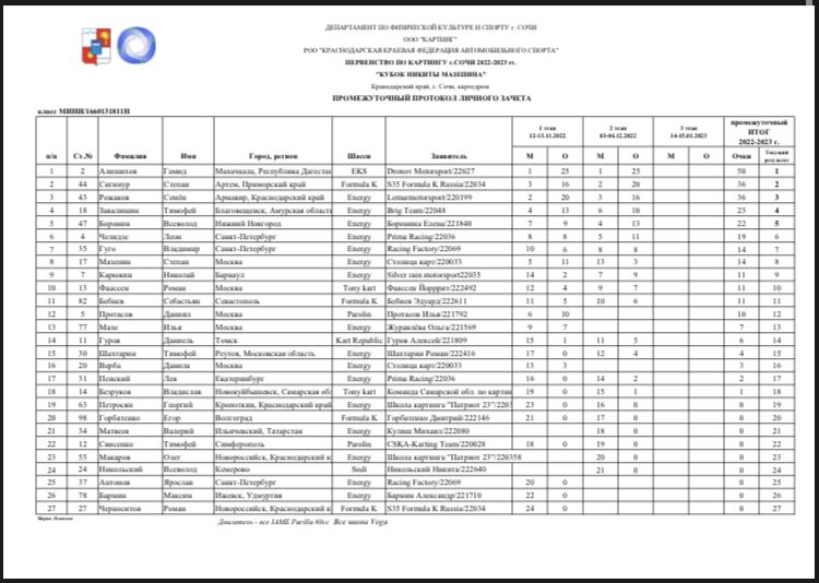 Общий итог кубка Мазепина